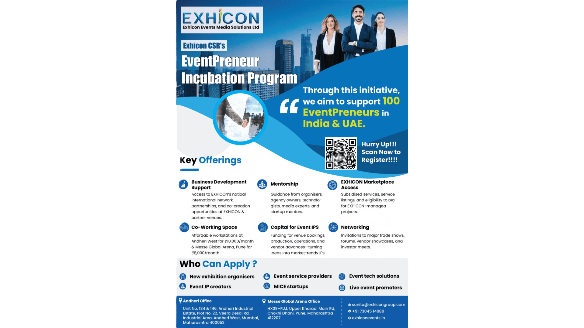 EXHICON CSR through this initiative aims to support over 100 Eventpreneur over the next three years and enable the creation of 25 new event IPs in India & UAE.